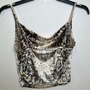 Akira Crushed Velvet Snake Print Crop Tank Cowl Neck Size Large
