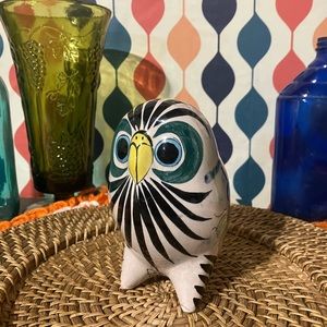 Mexican Tonala Pottery Ceramic Owl Figurine Hand-Painted Signed Cat 324