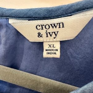 CROWN & IVY SLEEVELESS WOMENS TOP DENIM WITH EMBROIDERED COLOR THREADS XL