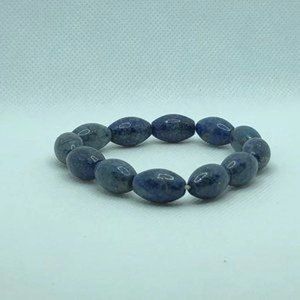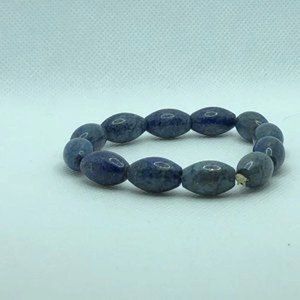 Unsure of material however this beaded stretch bracelet has some weight to it and beads are cold to the touch