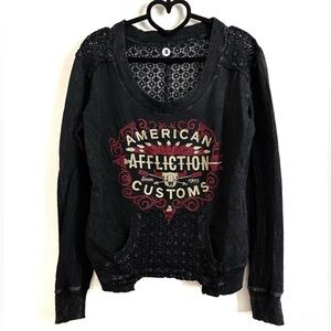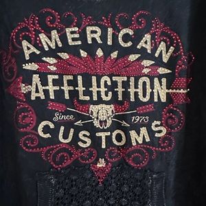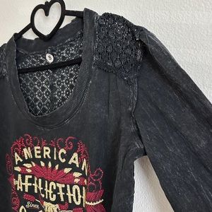 NWOT Affliction Black Mineral Washed Jeweled Graphic Crochet Cotton Top Size S