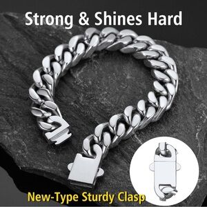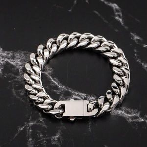 Men Silver 13mm Wide Stainless Steel Miami Curb Chain Bracelet