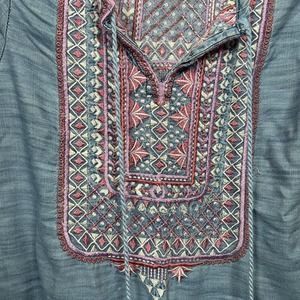 Tolani Women XS Blue Chambray 3/4 Sleeve Top Blouse Embroidered Boho.