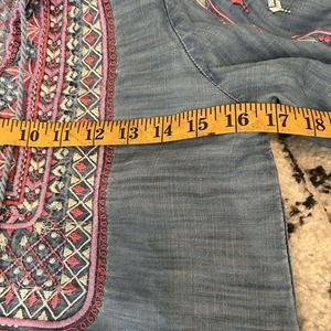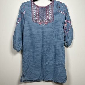 Tolani Women XS Blue Chambray 3/4 Sleeve Top Blouse Embroidered Boho