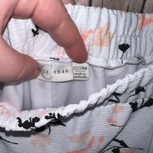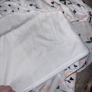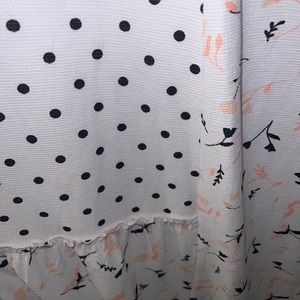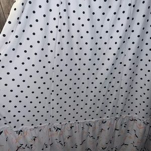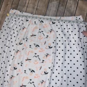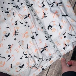 Adorable and perfect skirt for the spring and summer! Beautiful floral and polka dot pattern with ruffle detail. No flaws noted to item. See photos for measurements and fabric content details.