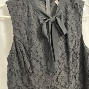 Cute fitted black dress with lace design.