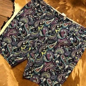 Amazing print. Purples. Blues. Yellow. Lightly worn.