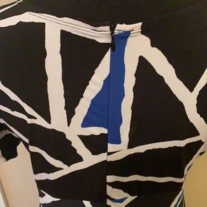 EUC Blue, Black, and White Geometric Pattern V Neck Short Sleeve Dress