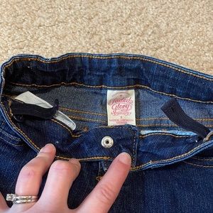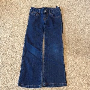 Like new Dark blue toddler denim flare jeans with adjustable waist band.