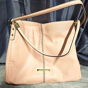 Anne Klein Soft Light Pink Faux Leather Shoulder Bag Large Capacity