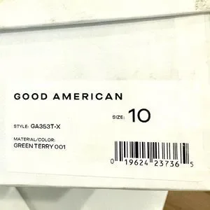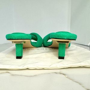 New in Box. Brand new Good American Green Terry Cloth slip on kitten heels in a women's size 10. Comes with box and dustbag.