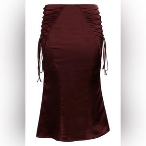 House of CB Sidonie Lace-Up Satin Trumpet Midi Skirt