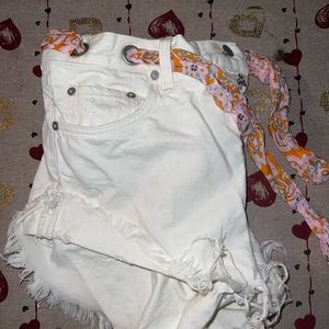Free People We The Free Raw Hem Cutoff Sash Shorts White Sz 29