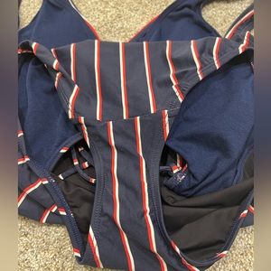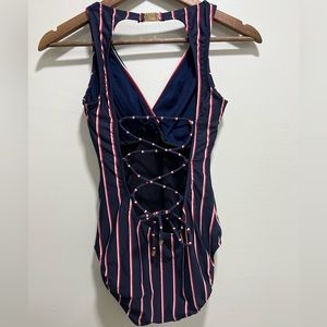 LAUREN Ralph Lauren Navy Striped Tie-back Women’s One-piece Swimsuit, Small