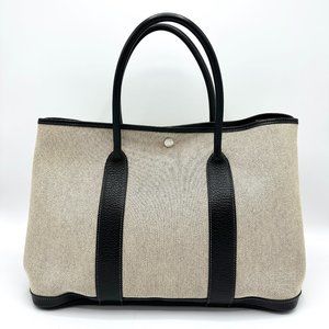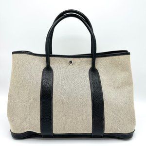 100% Authentic Hermes Canvas/Black Buffle Leather Garden Party 36