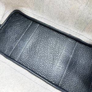 Details: Very minor scuffing on corners. Few minor dirt marks on exterior not really visible because of the color of the canvas. Handles bow outwards away from the bag a bit. Clean interior
