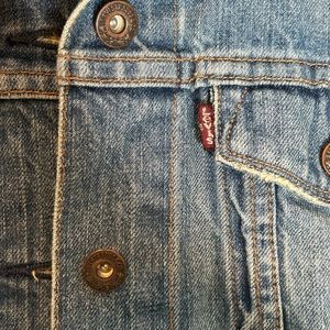 Levi’s trucker boyfriend jacket distressed size med. measurements are app chest 38” length 19” logo and button closure