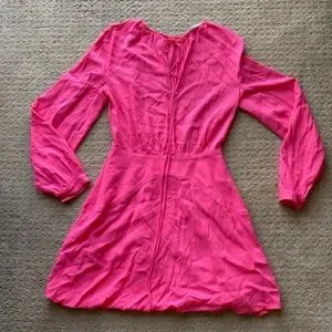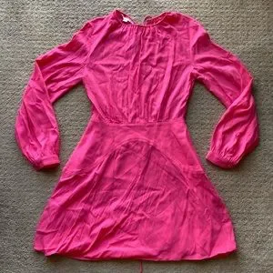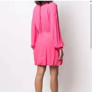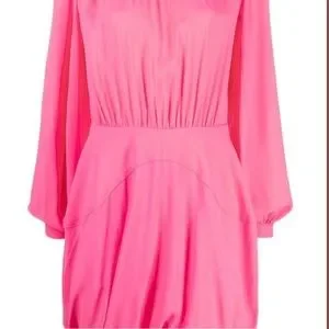 stella mccartney gathered mini dress hot pink small long sleeve wedding guest