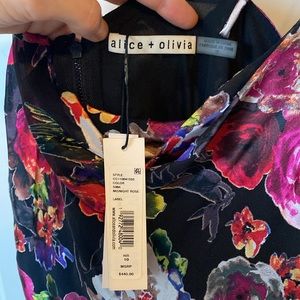 Lovely colorful floral high-low, cowl neck dress by Alice + Olivia. Size 10, new with tags never worn. Viscose/silk material, super light weight and flowy.