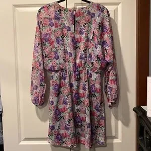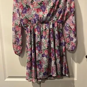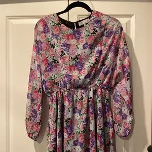Wayf Long Sleeve Floral Print Mini Dress. Size S. Purple/Pink. Batwing Sleeve.