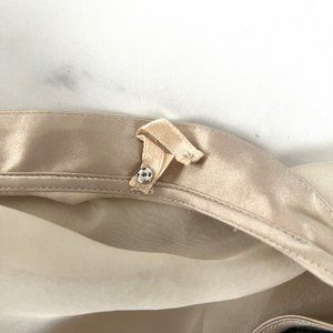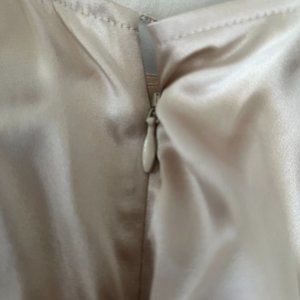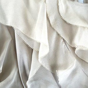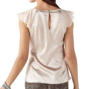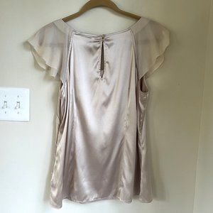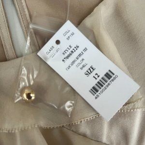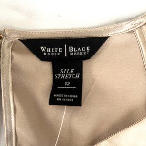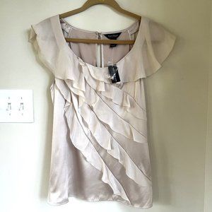 NEW WHBM Silk Stretch Cascading Ruffle Blouse Top, Champagne Shell, Size 12