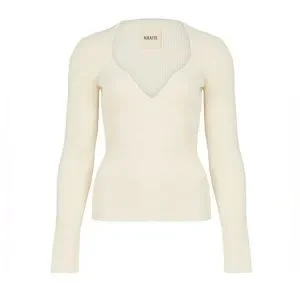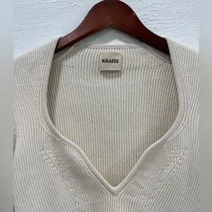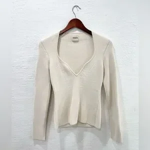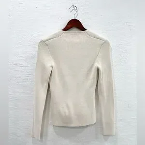 Condition is pre owned. No holes or stains. Featuring ribbed knit, scallop edge, sweetheart neck, long sleeves and straight hem.