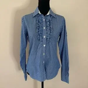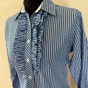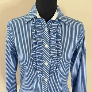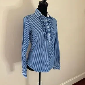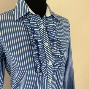 Ruffle front button down, great with crisp white jeans/pants/shorts
