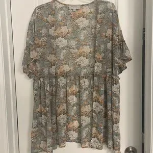 Floral tiered kimono. Green, tan, orange and cream colors. Great condition!