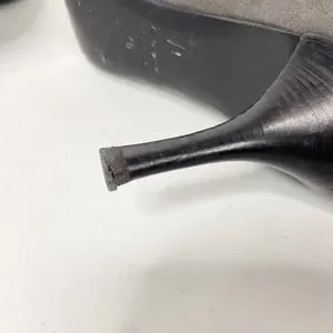 One of the heel taps will need to be replaced as it is cracked. Please see last two photos for close up details. The shoes are in otherwise perfect condition.