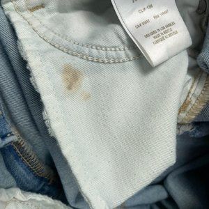 Very Good Condition. These jeans are intentionally ripped/distressed. There is a small stain on the interior on the pocket. Please see pictures for better details.