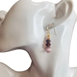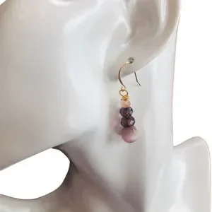 BOHO Indie 14k/Sterling Silver Earrings Pink Jade, Cats Eye Pink Deep Purple