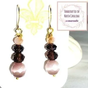 Artisan Crafted in North Carolina! Handmade, beautiful earrings- 14k GP French Wires over Sterling Silver.UNIQUE - one-of-a-kind creations by the artist! Austrian crystals, Russian & matte Amazonite, cats eye & more are incorporated in the designs. Natural materials have inclusions- some components may be silver plate, 14k GF or pewter❤️. 🌟 custom card & boxed- See photos for measurements . These feature Cats Eye in Pink & Purple Fired Crystals🌟 Tags: Tiffany Pandora David Yurman Anthropology J Crew Lagos Kendra Scott