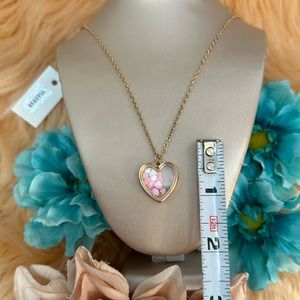 Heart Pendant Necklace With Encased Floating Pink Hearts NEW!