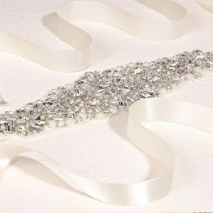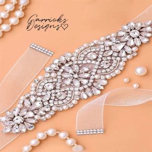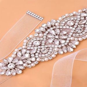 This beautiful sash belt is made from rhinestones and faux pearls set on a sash backing.