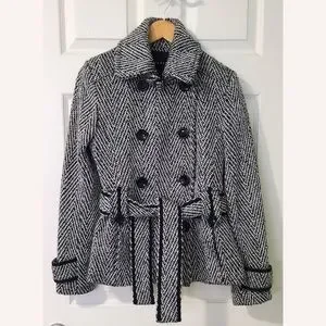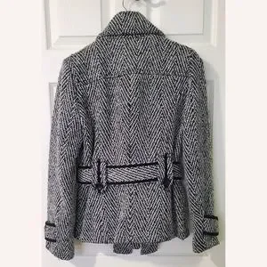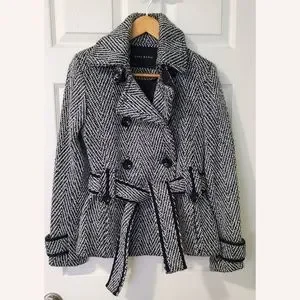 Zara wool blend (30% wool) coat with tie belt at the waist and bucket belt at the neck. Very think and warm. It's my most picked one. No stain, but as wooly nature, it caught up in little cotton ball at the sleeves. See the last picture.