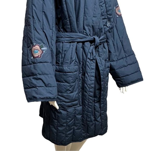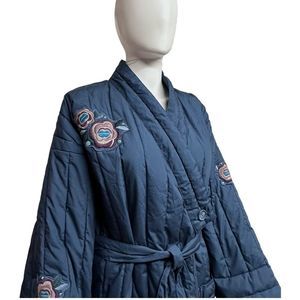 GUDRUN SJODEN Quilted Kimono Style Puffer Coat with Embroidered Appliques L