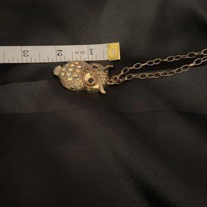 GOLD/COPPER OWL WITH AURORA BOREALIS AND BLACK RHINESTONES CONDITION GOOD LENGTH 30" OWL 2.0"