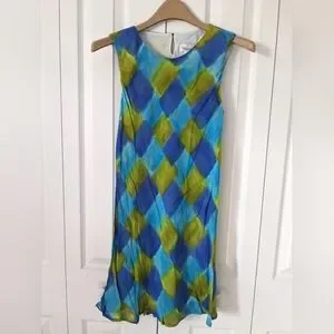 Tessuto Sleeveless Rayon Mini Dress, Argyle Blue Green, S