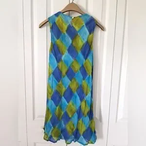 Tessuto Sleeveless Lined Rayon Mini Dress, Argyle Blue Green, S