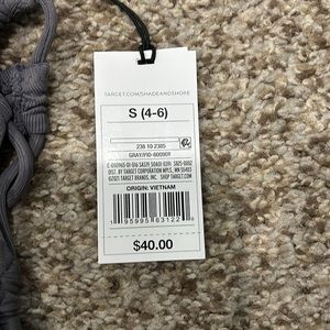 Target Shade and Shore bathing suit. Greyish purple color. Adorable but didn’t fit right. It’s a small and I am 5’7 and 120lbs with a long torso. Otherwise it’s so cute!