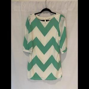 Green And White Zig Zag Stripe Shift Dress With Liner By Together - Size Small. Condition is "Pre-owned". Shipped with Economy Shipping.