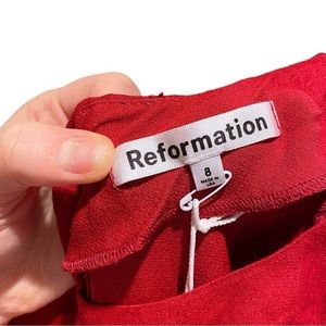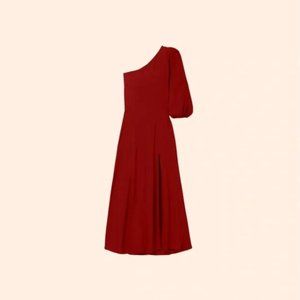NWT Reformation Lawrence One Shoulder Crimson Red Puff Sleeve Midi Dress Size 8