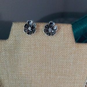 New Silver Rose Necklace and matching post earrings set.