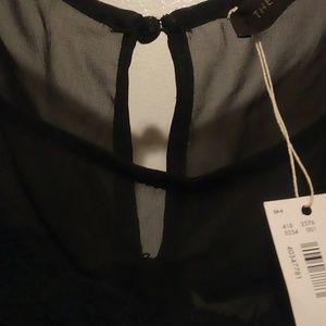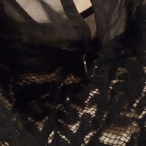 Sheer top and black lace overlay with nude lining.