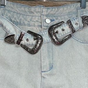 The cutest western inspired high waisted denim shorts with detachable belt!! Pair it with a basic tank, a pair of cowgirl boots for the perfect look! ✨💞