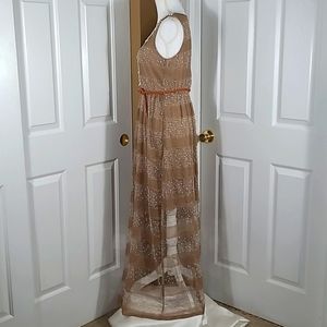 A'reve Striped Sleeveless Maxi Sundress Dress Brown Cream Crocheted Front