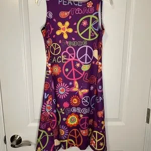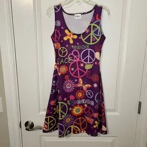 Colorful Y2K Peace Sign Butterfly Flower Power Purple Mini Dress