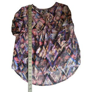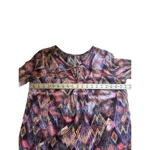 Brina & Em multicolored top is a stylish addition to any wardrobe. The 3/4 sleeves and front tie detail make it a standout piece, appealing to those who value fashion and comfort. In great condition.