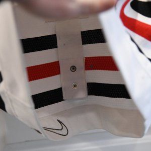 This is an *Authentic* Nike Centre Ice Chelios Blackhawks home jersey. My father bought this for me from the team itself in the 1990s. It has a small black dot(in photo). Amazing jersey, amazing player. Size 44.