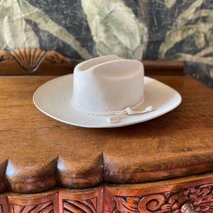 Item description: Quite literally one of a kind (if google can't find another one, do they even exist?) this wool cowboy hat from Hudson's Bay Company was made for the Calgary Stampede. What looks like sat on the shelf for decades and not on anyone's head means this old gal deserves to shine. And I guess 2024 is her time!